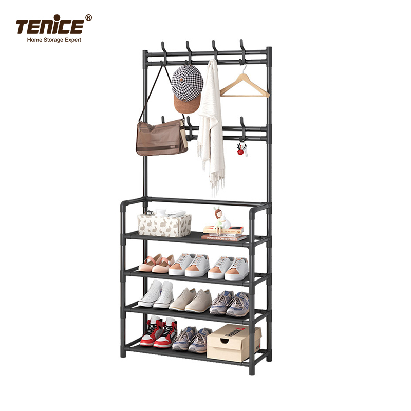 भंडारण प्रवेश द्वार के लिए जूते रैक आधुनिक लोहे के लिविंग रूम फर्नीचर बैग रैक के लिए धातु के साथ 3-इन-1 डिजाइन