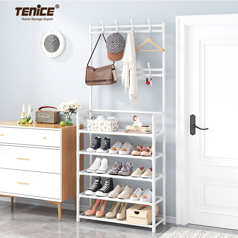 収納玄関コートシューズラックモダンアイアンリビングルーム家具バッグラック寝室用テニスホールツリー3-in-1デザインメタル付き